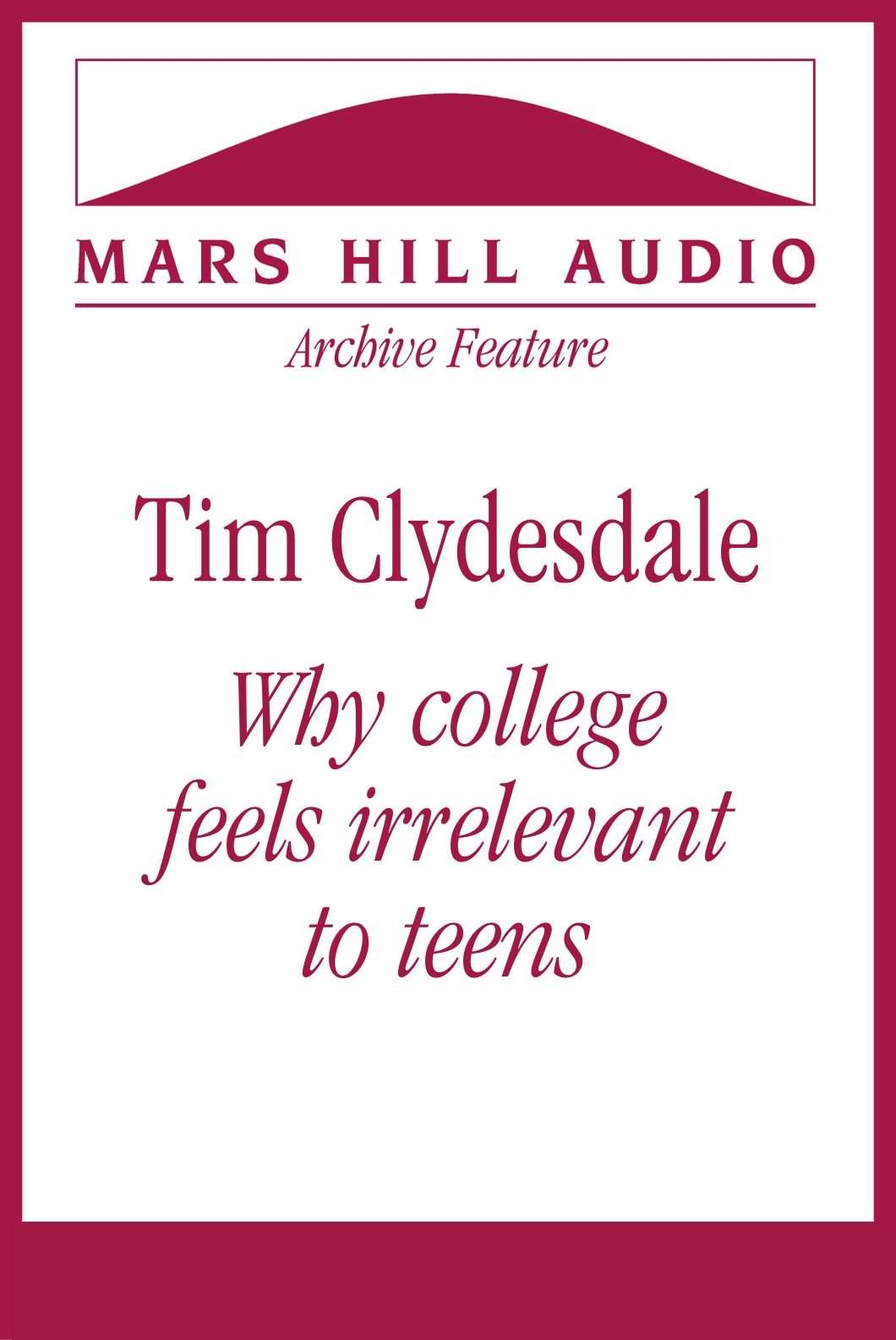 Tim Clydesdale, author of The First Year Out: Understanding American Teens After High School (Chicago University Press, 2007), discusses the experience of freshmen year at college. He reflects on his own experience of leaving home and coming to Wheaton and joining a community of scholars of the wider world, and he contrasts his experience with the research he collected over a year of study contemporary freshmen. For many students through primary and secondary schools, the dominant paradigm of learning is bulimic: studying and gaining knowledge is for the sake of checking off boxes on the way to getting somewhere, as opposed to enjoying studies and being nourished in their minds as part of a process of maturation. After taking in the minimum amount of information necessary, students then regurgitate the information back at teachers. By the time they enter college, Clydesdale suggests they’ve been effectively inoculated against a love of knowledge, and professors face an uphill battle to teach them to learn. He connects this mode of learning with a particular American moral culture that is skeptical and antagonistic of authority. In this culture, students are the autonomous arbiters of moral knowledge, deciding what is good or evil without regard to moral authorities, if they are even recognized as such. Similarly, students are the autonomous arbiters of their education, the final judge of what ought to be learned or not, and authorities are distrusted in comparison to the self. Clydesdale connects this moral culture to a suspicion of history and a bias toward the new, as well as to the centrality of niceness in college society. Instead of cultivating reflection on the deep questions of meaning and life, students are overwhelmed with developing and using techniques to manage their lives without reference to the ends or purposes toward which their lives should be oriented.