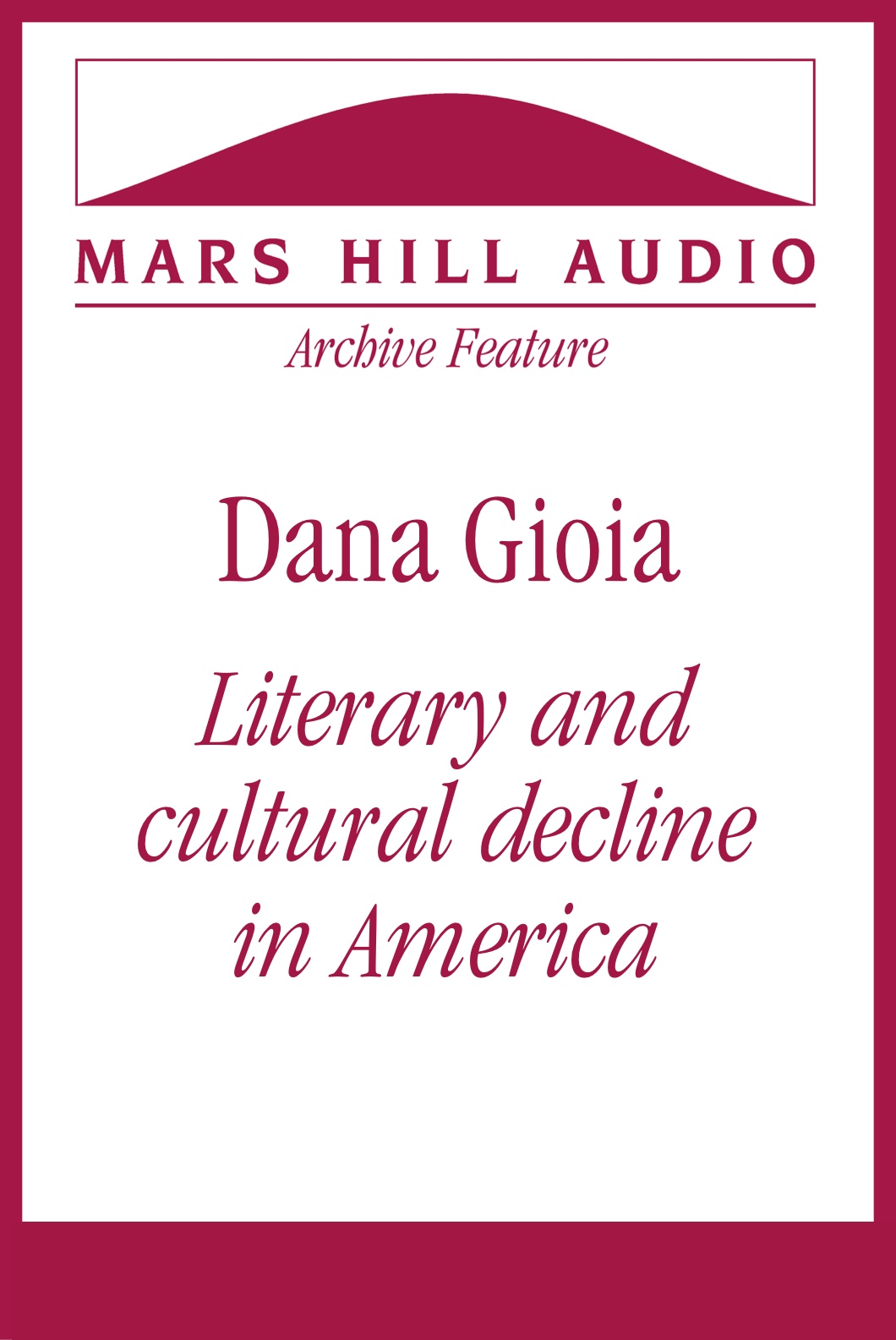 FROM VOL. 51 Poet Dana Gioia discusses the state of contemporary poetry and the sacramental relationship between language and reality. (15 minutes) - Mars Hill Audio Journal, Volume 164 — FEATURED GUESTS: Dana Gioia, Brady Stiller, Robert Royal, Richard DeClue, Tiffany Schubert, and Joonas Sildre