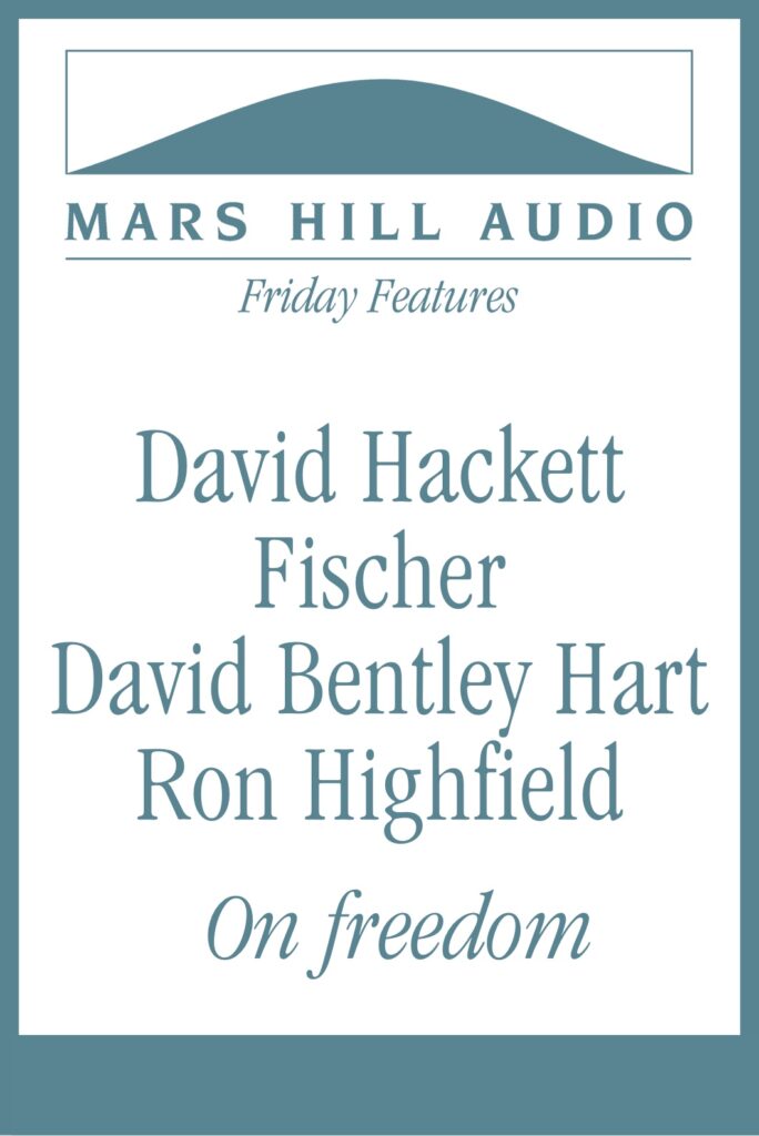 The theme of the meaning of freedom has been addressed in a number of interviews on the Journal. This Friday Feature excerpts three of them. The guests are David Hackett Fischer (Liberty and Freedom: A Visual History of America’s Founding Ideas), David Bentley Hart (Atheist Delusions: The Christian Revolution and Its Fashionable Enemies), and Ron Highfield (God, Freedom, and Human Dignity). Fischer discusses what Americans since the Revolution have thought about liberty and freedom. Hart reveals the feeble and confused arguments of the recent crop of outspoken atheists and explains how a misunderstanding of the nature of freedom is at the heart of their revulsion at religion. And Highfield explores why the modern assumptions about personal identity, freedom, and human dignity create prejudices against the Gospel’s account of God and the self.