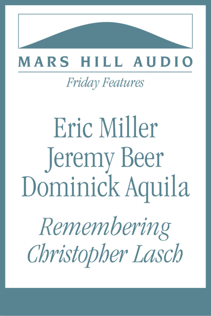 The wisdom of historian Christopher Lasch (1932–1994) has been a point of reference in many of the interviews heard on Mars Hill Audio since we began. Just months after Lasch died, Ken Myers talked with one of Lasch’s students, Dominic Aquila, about Lasch’s insights into how trends in late modern culture were evidenced in the state of the arts and arts institutions. Another past guest (on Volume 77 and 103) was Eric Miller, author of the acclaimed biography, Hope in a Scattered Time: A Life of Christopher Lasch. In addition to presenting the complete Aquila interview and portions of two interviews with Miller, this Friday Feature includes a recent conversation with Jeremy Beer, author of one of our latest Audio Reprints, “On Christopher Lasch.”