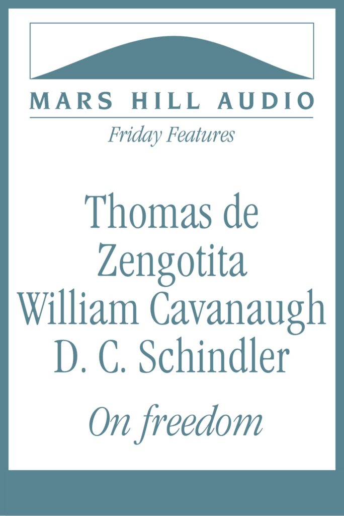 In anticipation of this Fall’s Areopagus Lecture entitled “‘For Freedom Set Free’: Retrieving Genuine Religious Liberty,” we present selections from interviews with three Mars Hill Audio guests who have raised questions about the modern understanding of freedom. Thomas de Zengotita (author of Mediated: How the Media Shapes Your World and the Way You Live in It) talks about the sense of “optionality” that permeates the postmodern spirit. William Cavanaugh (Being Consumed: Economics and Christian Desire) offers some questions inspired by Augustine about the kind of freedom envisioned in “free markets.” And D. C. Schindler (Freedom from Reality: The Diabolical Character of Modern Liberty) invites us to compare modern assumptions of freedom with those that informed classical and pre-modern Christian thinking.
