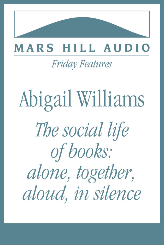 In her book The Social Life of Books: Reading Together in the Eighteenth-Century Home, Abigail Williams describes how the practices of reading aloud survived even as private, silent reading was becoming more common. Williams writes, “Reading aloud could mean sitting on a bench and reading cheap printed versions of folk tales to an illiterate artisan audience, or gathering the family around for a sermon on Sunday evening. It could mean sitting alone and enjoying the sound of a text. It could also, increasingly, mean standing up in a newly furnished parlour and clutching one’s breast in delivery of the sentimental apogee of a recent novel to a group of polite acquaintances.” This Friday Feature also includes excerpts from interviews with Eugene Peterson and Dana Gioia from our audio Anthology, On Books and Reading.