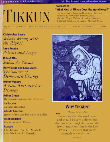 In 1986, in the middle of Ronald Reagan’s second term in office, historian Christopher Lasch wrote an article in the first issue of a new magazine called Tikkun. Described as a Jewish left-progressive quarterly — the liberal alternative to Commentary —Tikkun got its name from the Hebrew phrase, tikkun olam, “healing or restoring the world.”