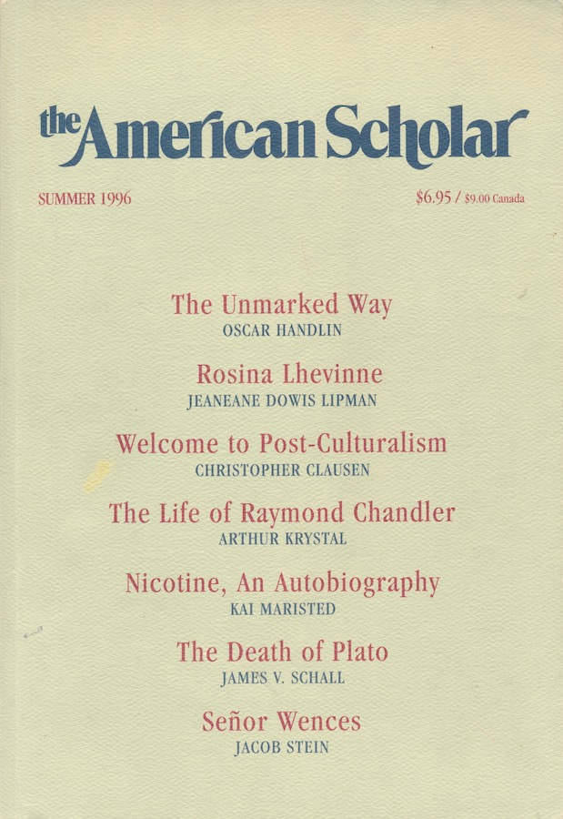 In the summer of 1996, The American Scholar published an essay by Christopher Clausen. It was called “Welcome to Post-culturalism” and in it, Clausen (a professor of English at Penn State University) reflected on how the word “culture” has come to mean something very different from its historical meaning in anthropology. In that context, it “refers to the total way of life of a discrete society, its traditions, habits, belief, and art.” This way of life was transmitted from one generation to the next and thereby served as a system of moral instruction and ethical restraint.